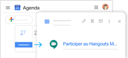 Démarrez une réunion depuis un navigateur, un téléphone mobile, un événement Google Agenda incluant un lien de visioconférence, et plus encore.