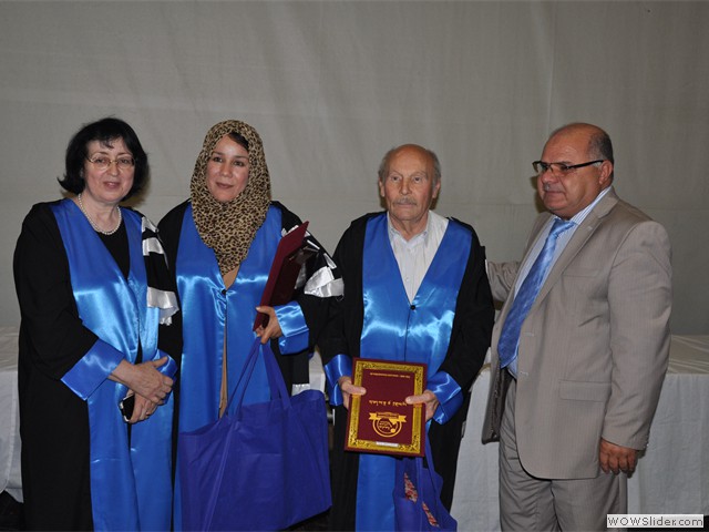 La cérémonie a été clôturée par la remise des prix et récompenses aux étudiants lauréats qui étaient au nombre de 32 dont une (01) étudiante en Master en post-graduation (FS) ayant passé avec succès le concours de bourse à l’étranger en 3eme cycle, les enseignants promus au grade de professeur (06) et Maitre de conférences (A) (17), les personnel ATS (04) et aux clubs scientifiques : INELECTRONICS de l’IGEE (Groupe: smart care) qui a décroché le prix de la meilleure création publicitaire à Injaz El Djarair 2014, la 3ème compétition annuelle des jeunes entrepreneurs, et le club ESPACE DU SAVOIR de la FSI (Groupe: Red Drones) qui a décroché le 1er prix au niveau Africain lors de le 3ème concours international « les 24 Heures de l’Innovation ».